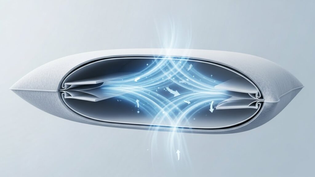 頭部から発せられる熱を、枕の内部で循環させて外へ逃がす設計です。
